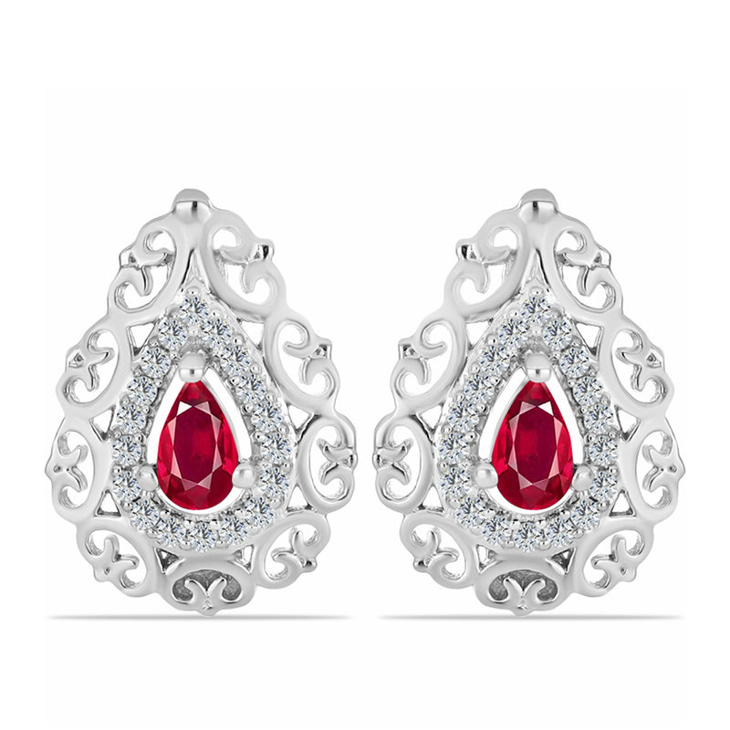 Stříbro 925/1000 Náušnice s Madagaskarským Rubínem a Bílým Topazem - Karátové číslo: 0.88. přibližná hmotnost: 3.72 gramů