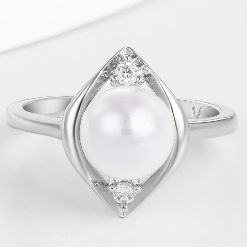 Pozlacená slitina Prsten se Skleněná Perla a Bílým Emporia® Křišťálem přibližná hmotnost: 10 gramů