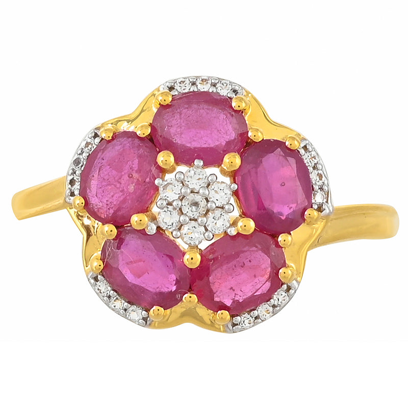 Pozlacené stříbro 925/1000 Prsten s Madagaskarským Rubínem a Bílým Topazem - Karátové číslo: 2.7. přibližná hmotnost: 3.18 gramů