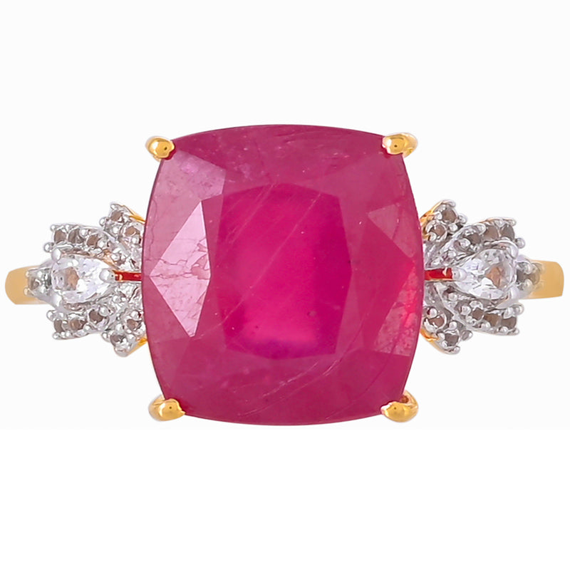 Pozlacené stříbro 925/1000 Prsten s Madagaskarským Rubínem a Bílým Topazem - Karátové číslo: 8.75. přibližná hmotnost: 4.65 gramů