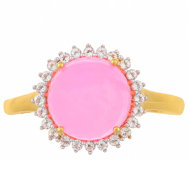 Pozlacené stříbro 925/1000 Prsten s Etiopským Neónově Růžovým Opálem a Bílým Topazem - Karátové číslo: 1.98. přibližná hmotnost: 2.88 gramů