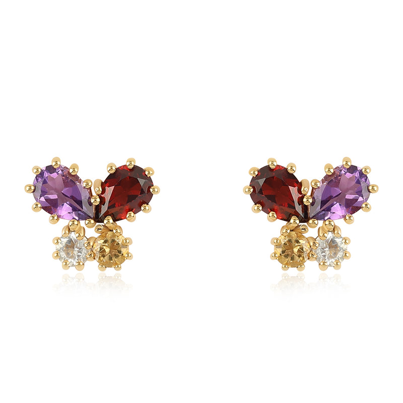 Pozlacené Sterlingové Stříbro 925 / 1000 - Náušnice s Africkým Ametystem a Citrínem