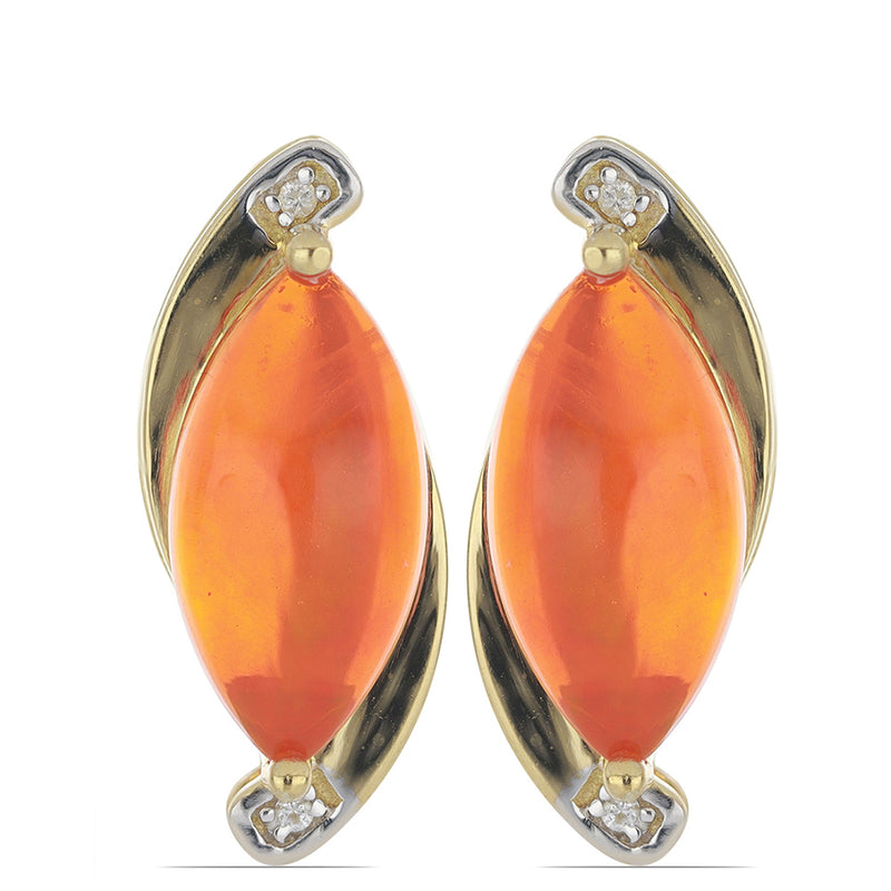 Pozlacené stříbro 925/1000 Náušnice s Oranžovým Opálem z Lega Dembi a Bílým Topazem - Karátové číslo: 4.9. přibližná hmotnost: 6.42 gramů