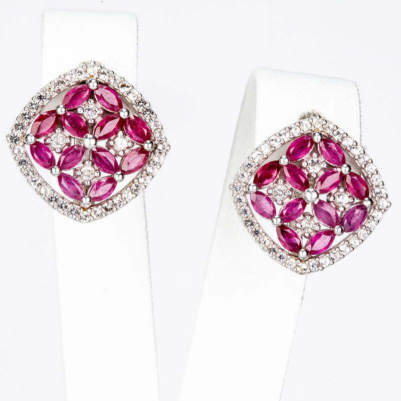 Stříbro 925/1000 Náušnice s Madagaskarským Rubínem a Bílým Topazem - Karátové číslo: 3.74. přibližná hmotnost: 6.09 gramů