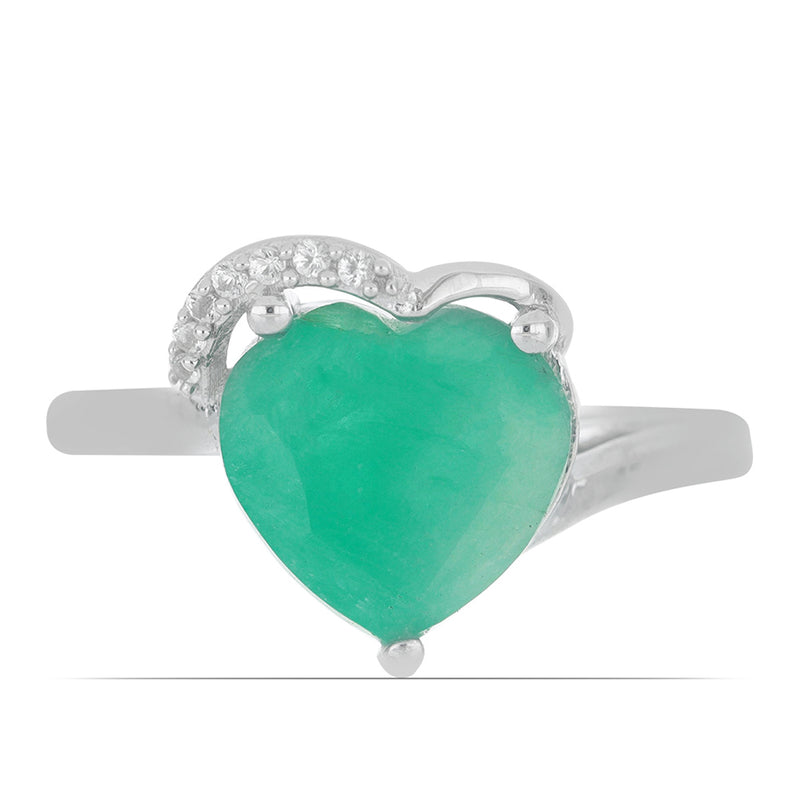 Stříbro 925/1000 Prsten s Brazilským Smaragdem a Bílým Topazem - Karátové číslo: 2.95. přibližná hmotnost: 3.03 gramů