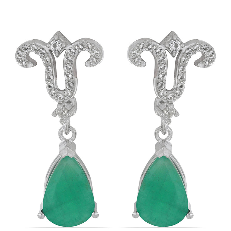 Stříbro 925/1000 Náušnice s Brazilským Smaragdem a Bílým Topazem - Karátové číslo: 6.45. přibližná hmotnost: 6.13 gramů