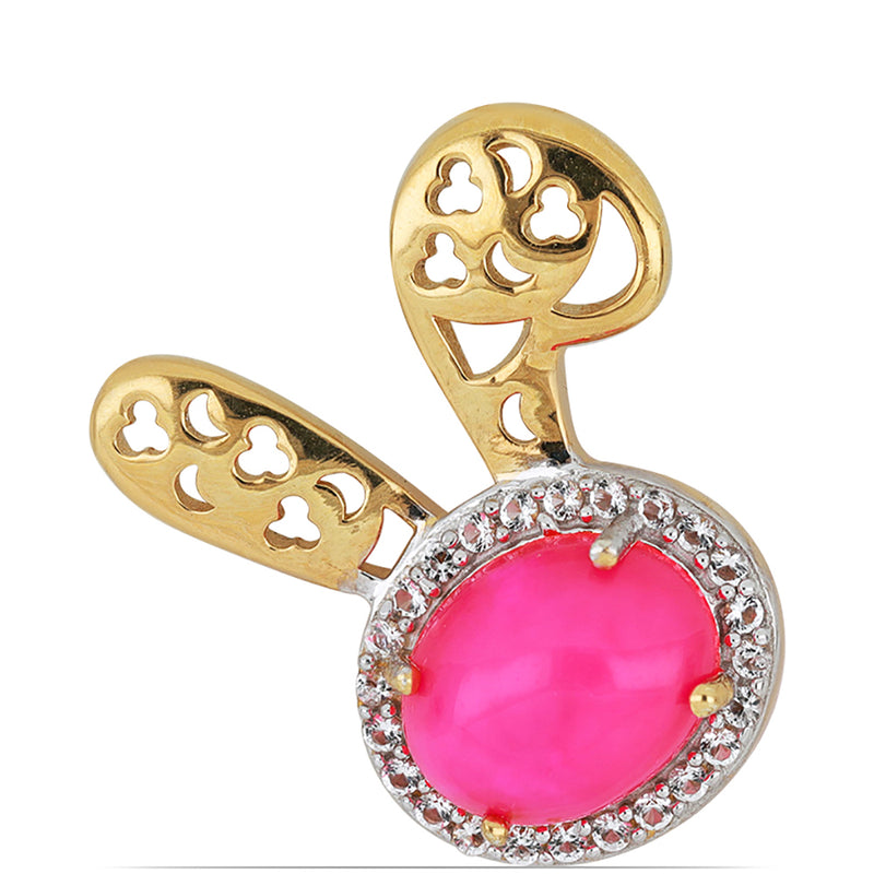 Pozlacené stříbro 925/1000 Přívěsek s Etiopským Růžovým Opálem z Lega Dembi a Bílým Topazem - Karátové číslo: 1.69. přibližná hmotnost: 2.74 gramů