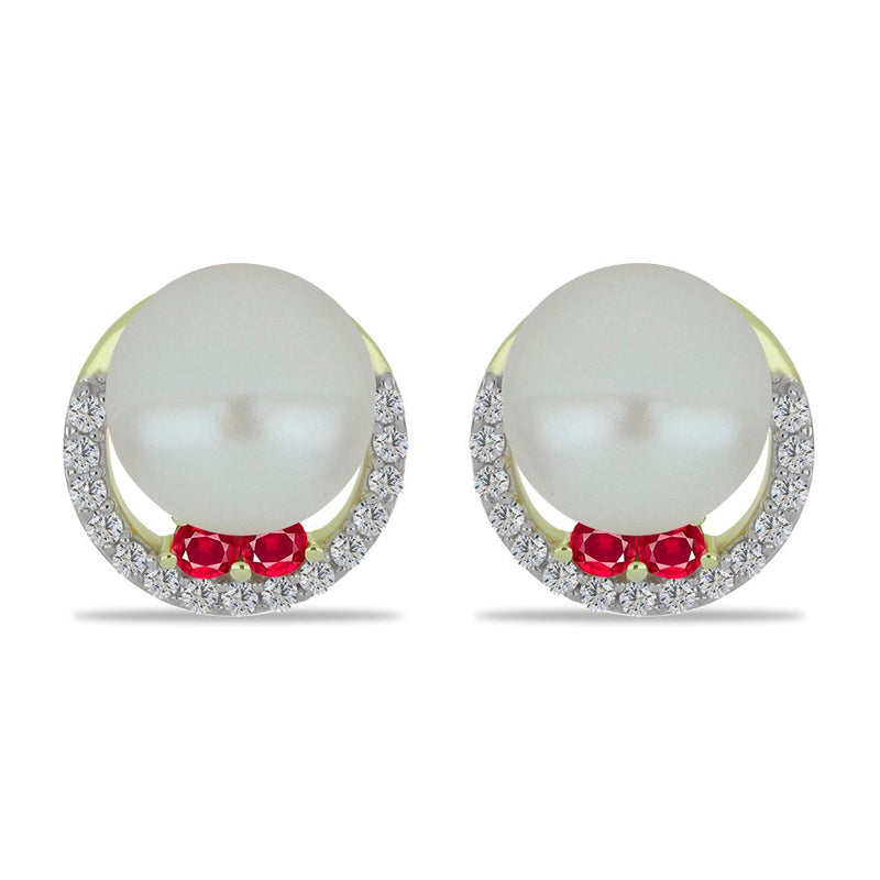Pozlacené stříbro 925/1000 Náušnice s Bílou Sladkovodní Perlou a Madagaskarským Rubínem - Karátové číslo: 6.04. přibližná hmotnost: 3.13 gramů