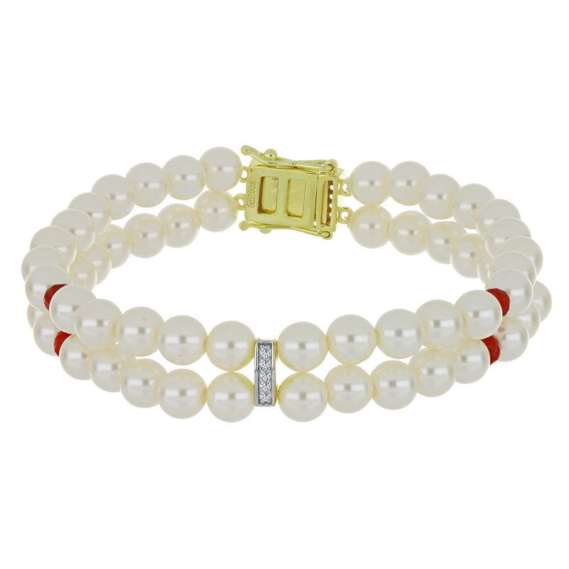 Pozlacené stříbro 925/1000 Náramek s Bílou Sladkovodní Perlou a Madagaskarským Rubínem - Karátové číslo: 82.16. přibližná hmotnost: 20.35 gramů