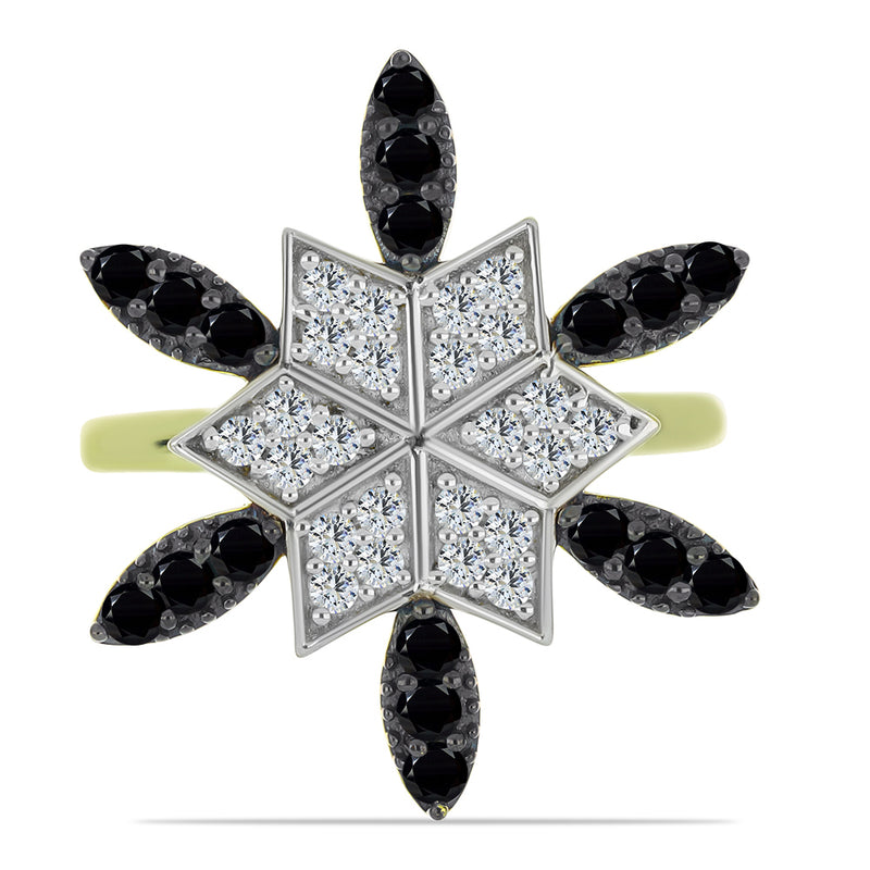 Pozlacené stříbro 925/1000 Prsten s Černým spinelem a Bílým Topazem - Karátové číslo: 1.19. přibližná hmotnost: 4.97 gramů