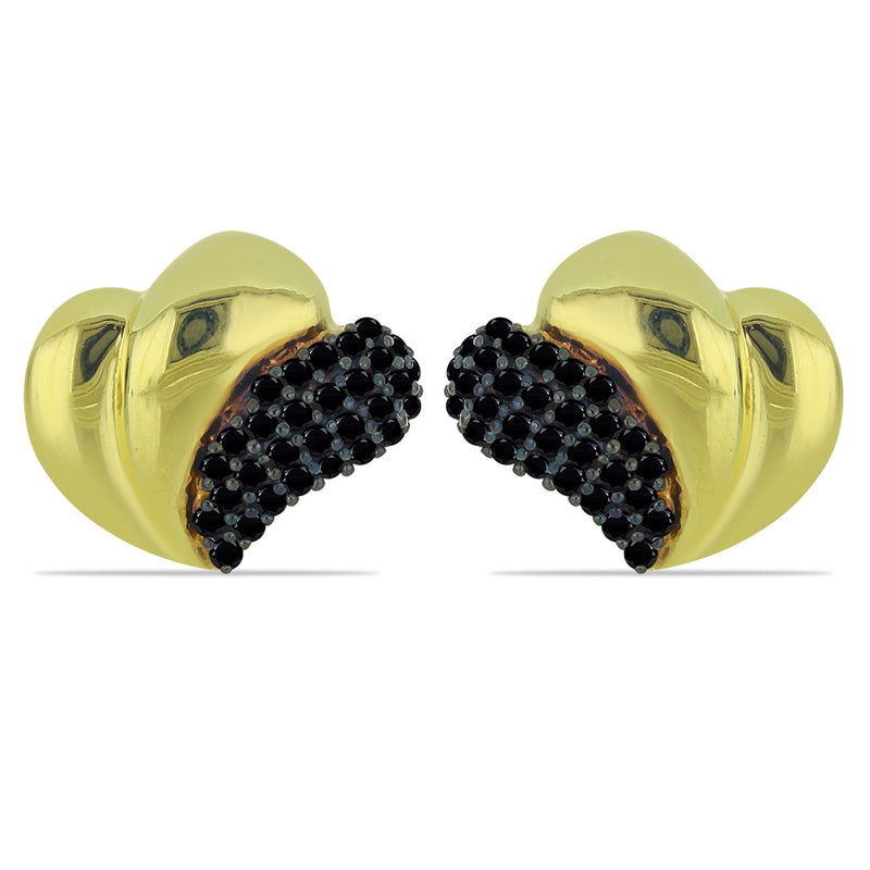 Pozlacené stříbro 925/1000 Náušnice s Černým spinelem - Karátové číslo: 0.48. přibližná hmotnost: 3.45 gramů