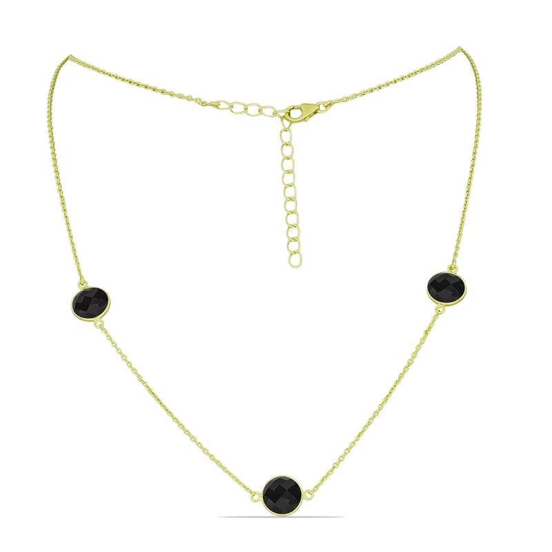 Pozlacené stříbro 925/1000 Náhrdelník s Černým spinelem - Karátové číslo: 72.75. přibližná hmotnost: 15.55 gramů