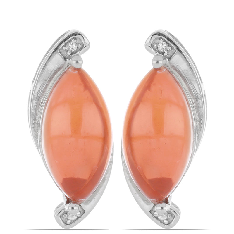 Stříbro 925/1000 Náušnice s Oranžovým Opálem z Lega Dembi a Bílým Topazem - Karátové číslo: 4.5. přibližná hmotnost: 6.13 gramů