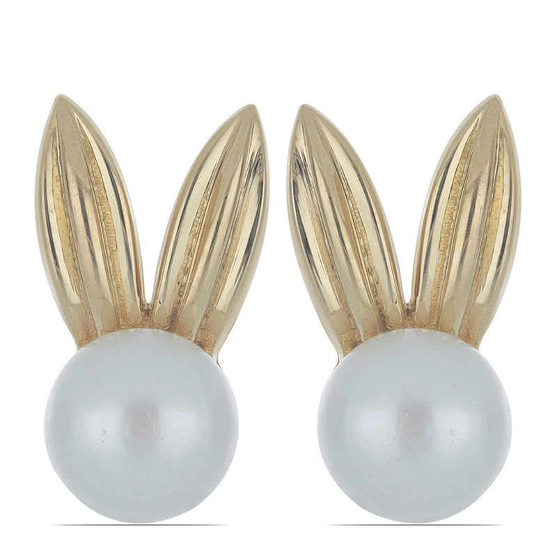 Pozlacené stříbro 925/1000 Náušnice s Bílou Sladkovodní Perlou - Karátové číslo: 5.96. přibližná hmotnost: 5.52 gramů