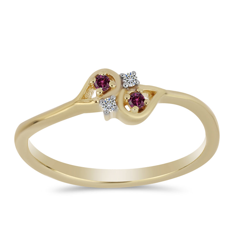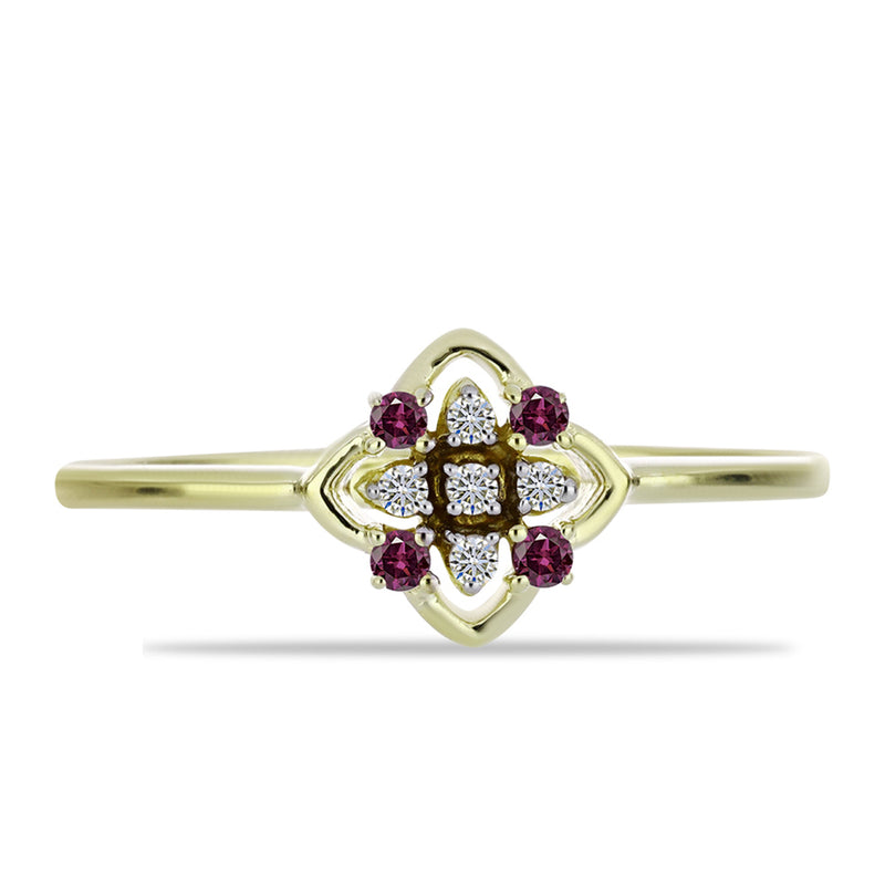 Pozlacený Stříbrný Prsten s Purpurovým Diamantem a Bílým Diamantem