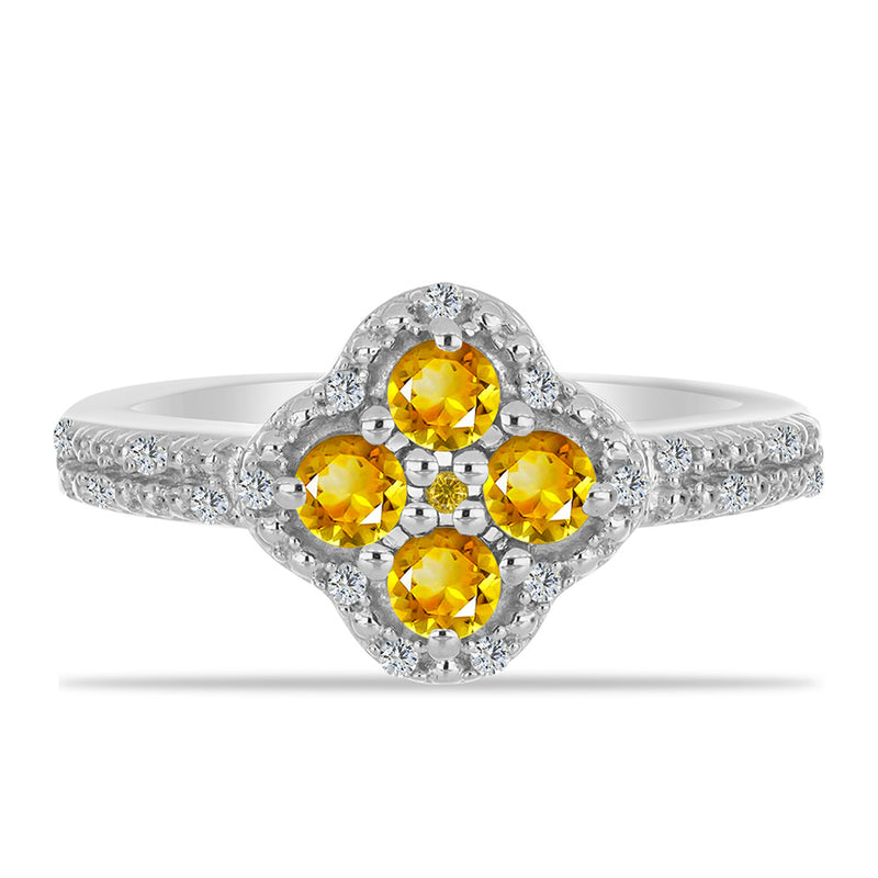 Stříbrný Prsten s Uralským Citrínem a Bílým Topazem