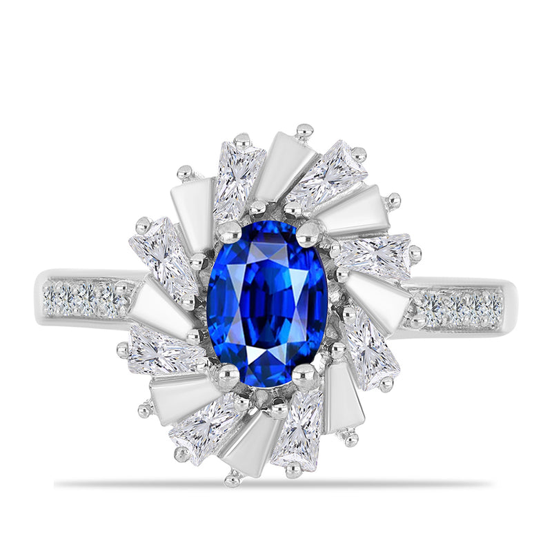 Stříbrný Prsten s Australským Modrým Safírem a Bílým Zirkonem