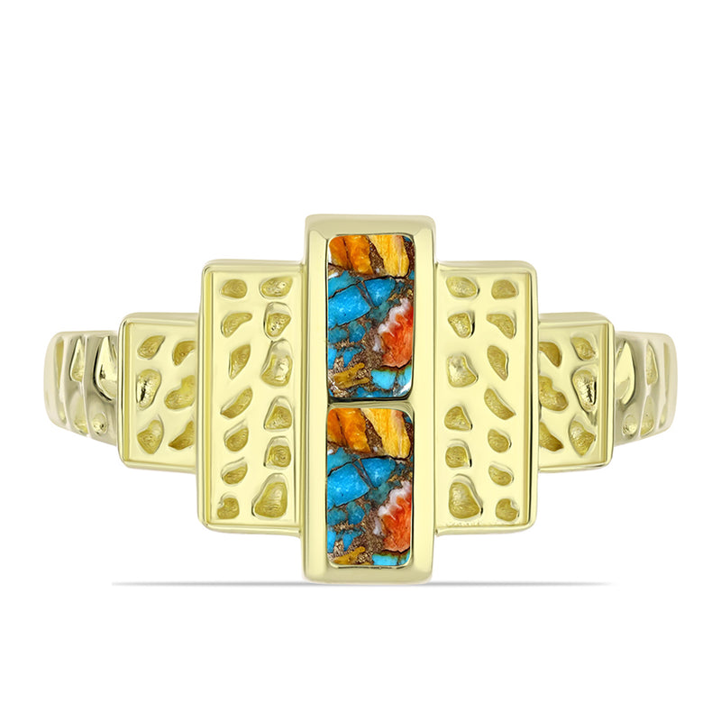 Pozlacený Stříbrný Prsten s Ústřicovým Tyrkysem