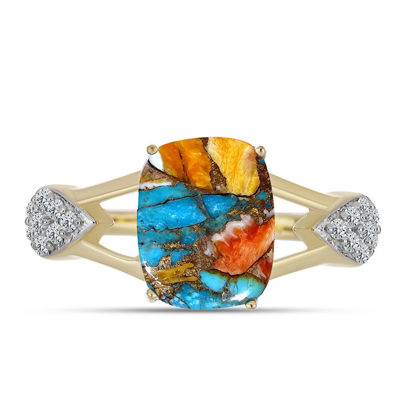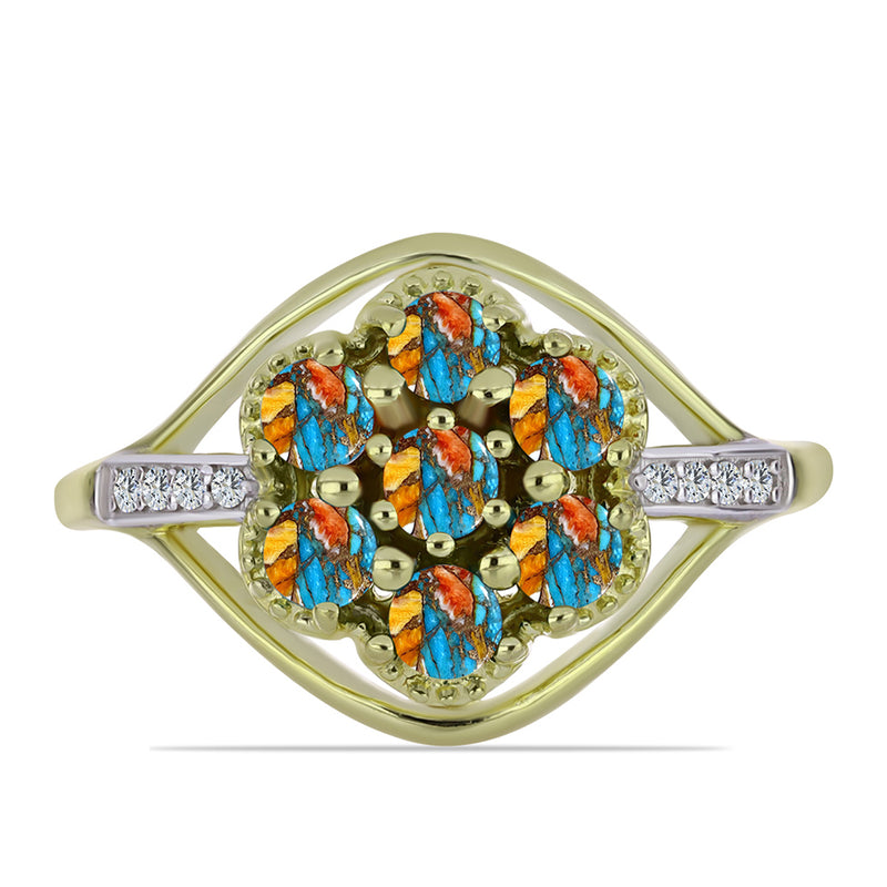 Pozlacený Stříbrný Prsten s Ústřicovým Tyrkysem a Bílým Topazem