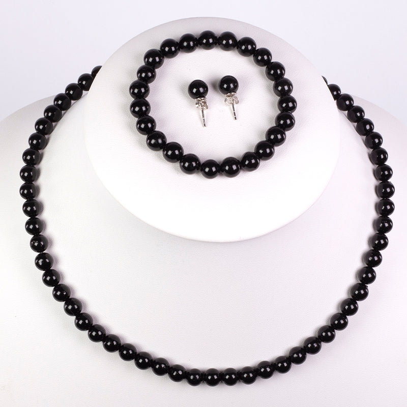 Stříbrná Sada s Černou Sladkovodní Perlou ( Náhrdelník+Náušnice+Náramek )