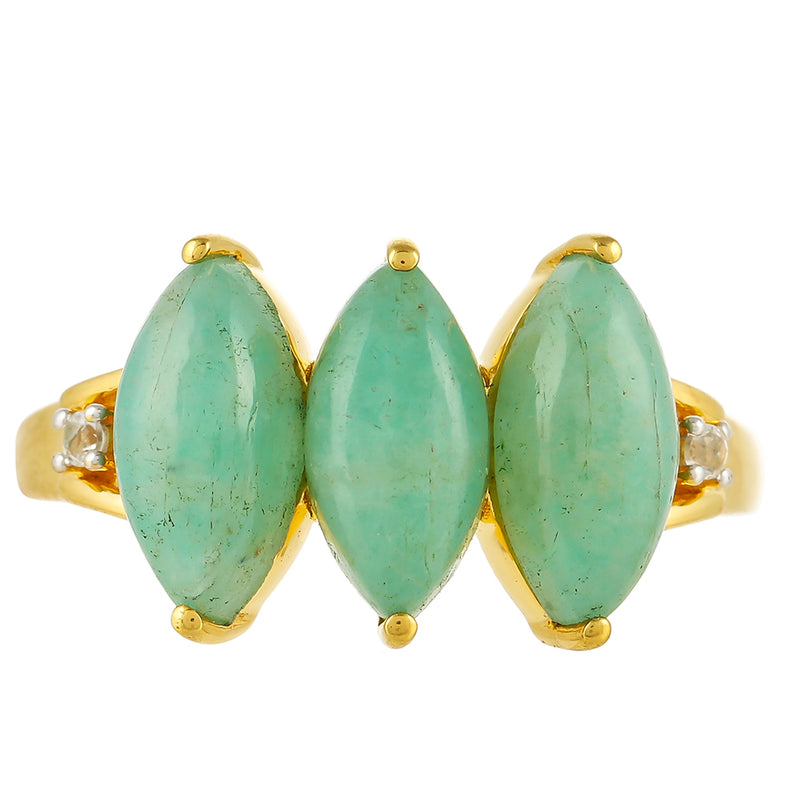 Pozlacený Stříbrný Prsten s Amazonitem a Bílým Topazem