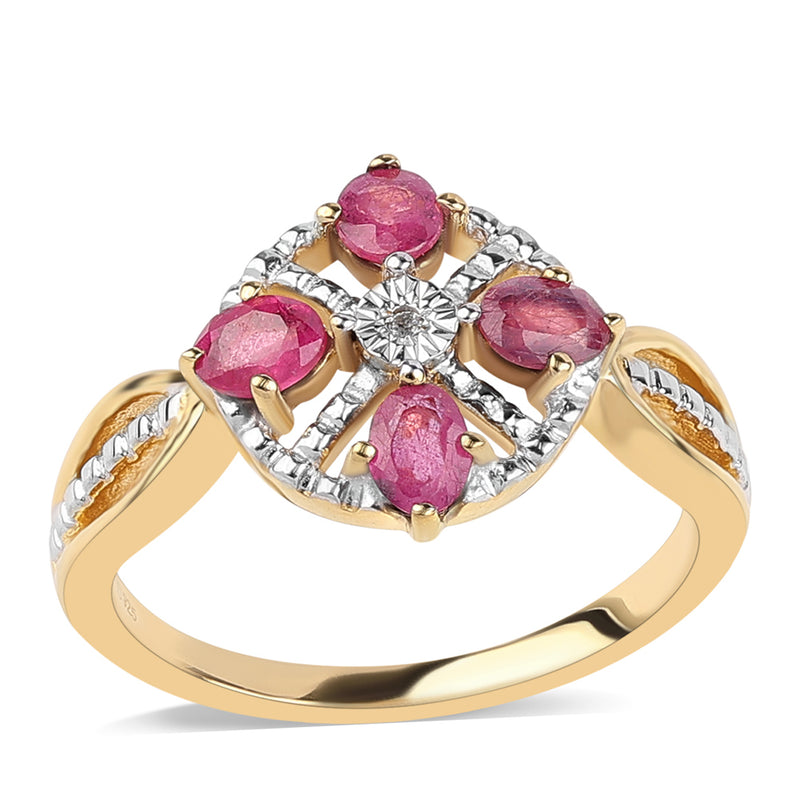 Pozlacený Stříbrný Prsten s Červeným Diamantem