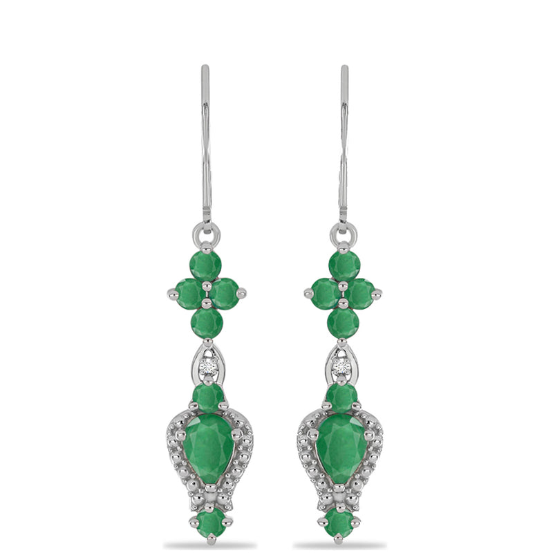 Stříbrné Náušnice s Brazilským Smaragdem a Bílým Diamantem