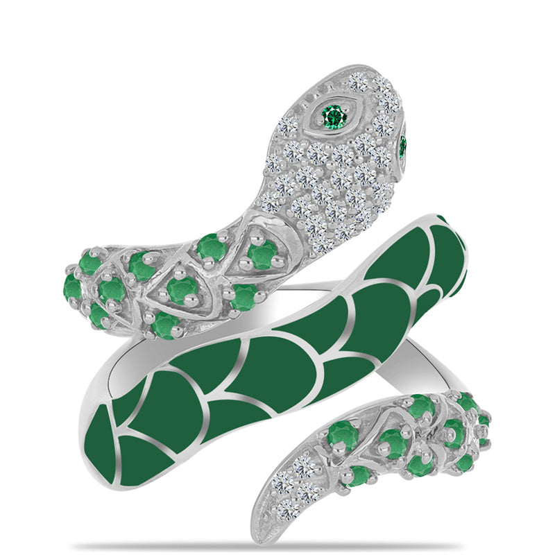 Stříbrný Prsten s Brazilským Smaragdem a Bílým Topazem