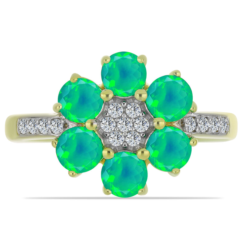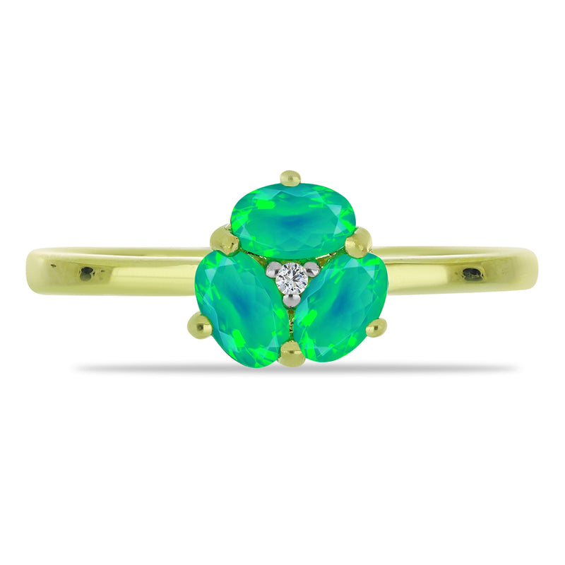 Pozlacený Stříbrný Prsten se Zeleným Etiopským Opálem z Lega Dembi a Bílým Topazem
