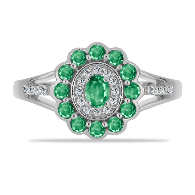 Pozlacený Stříbrný Prsten s Brazilským Smaragdem a Bílým Topazem