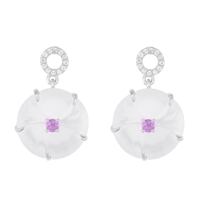 Stříbrné Náušnice s Optickým Křemenem a Růžovým Ametystem