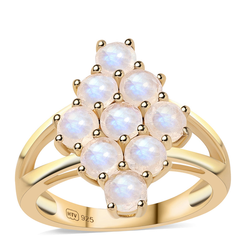 Pozlacený Stříbrný Prsten s duhovým měsíčním kámenem tř. AA