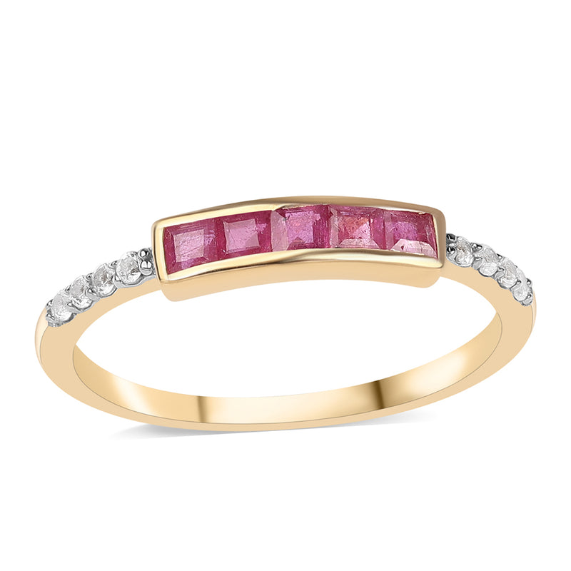 Pozlacený Stříbrný Prsten s Mozambickým Rubínem a Bílým Topazem
