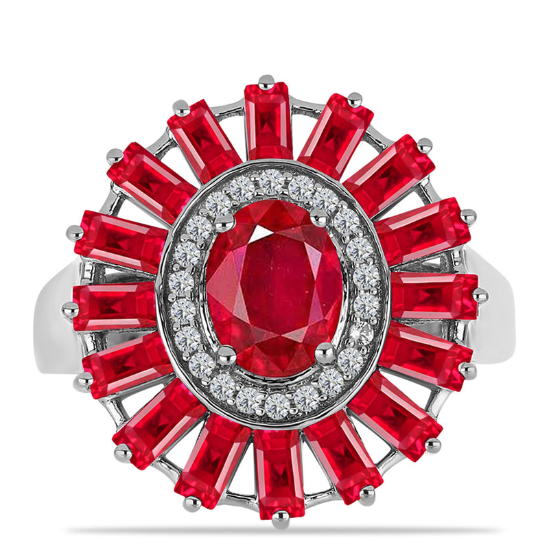 Stříbrný Prsten s Madagaskarským Rubínem a Bílým Diamantem