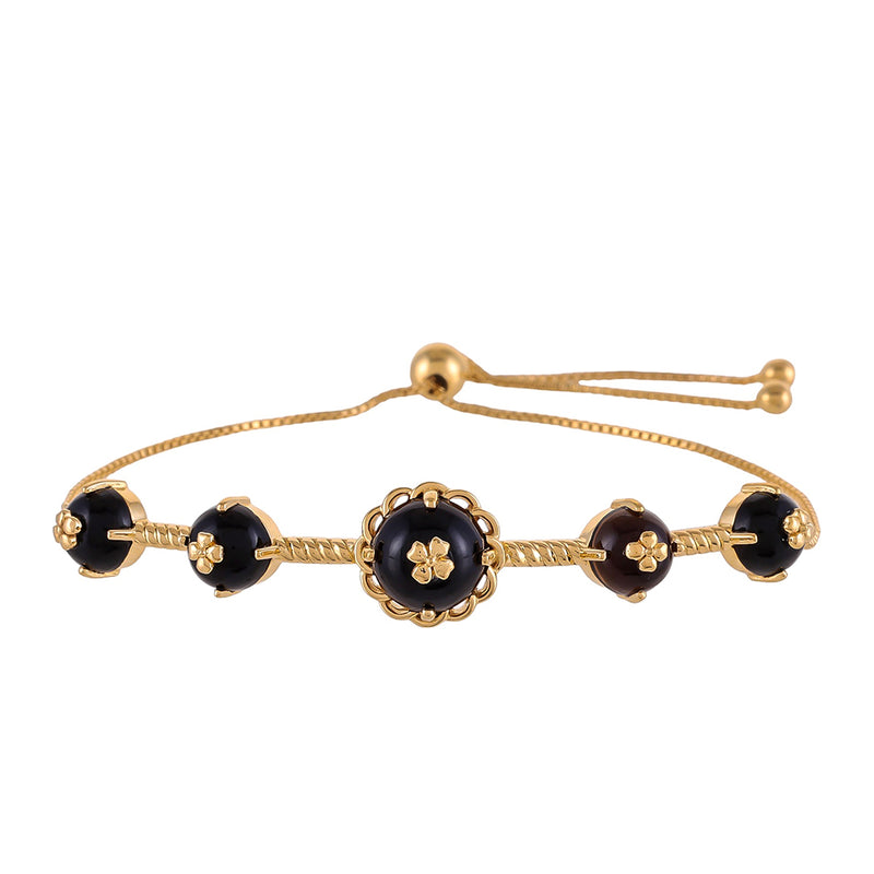 Pozlacený Stříbrný Náramek s Černým Onyxem
