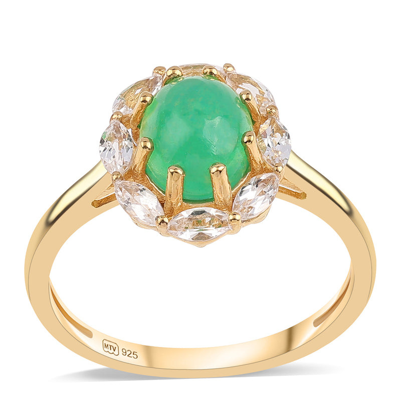 Pozlacený Stříbrný Prsten se Zeleným Etiopským Opálem z Lega Dembi a Bílým Topazem