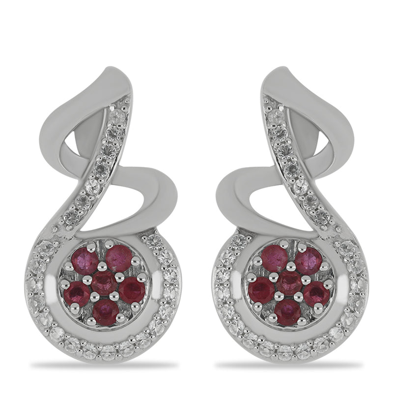 Stříbrné Náušnice s Madagaskarským Rubínem a Bílým Topazem