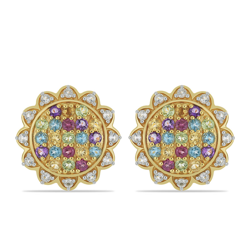Pozlacené Stříbrné Náušnice s Marockým Ametystem a Uralským Citrínem