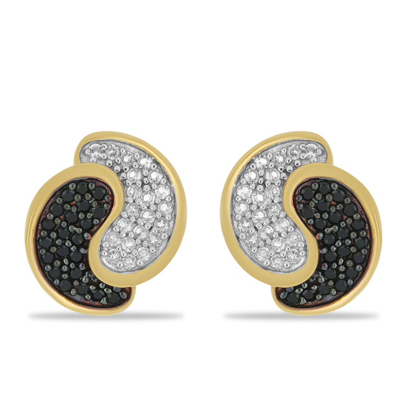 Pozlacené Stříbrné Náušnice s Černým spinelem a Bílým Topazem
