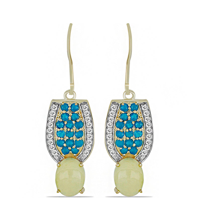 Pozlacené Stříbrné Náušnice se Žlutým Serpentinem a etiopským Paraiba modrým opálem