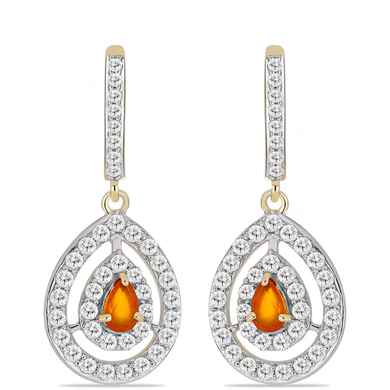 Pozlacené Stříbrné Náušnice s Karneolem a Bílým Topazem