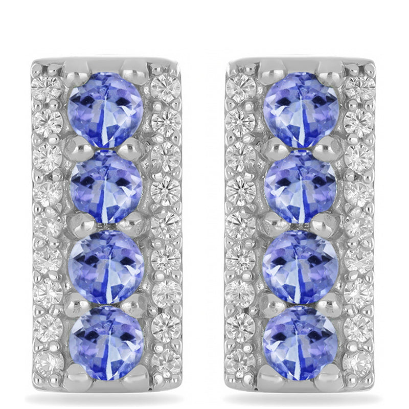 Stříbrné Náušnice s Tanzanitem a Bílým Topazem