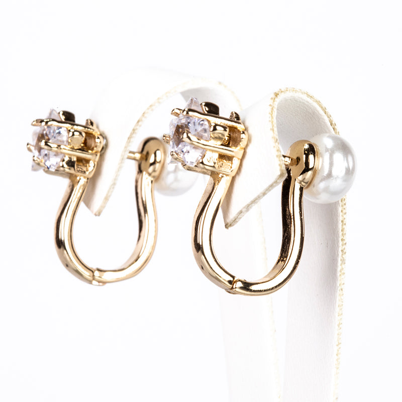 Pozlacené Slitinové Náušnice s Skleněná Perla a Bílým Emporia® Křišťálem