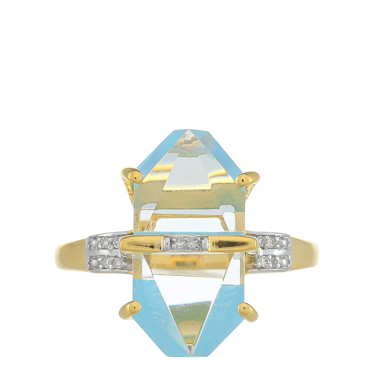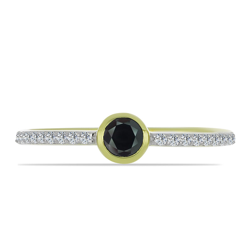 Pozlacený Stříbrný Prsten s Modrým Diamantem