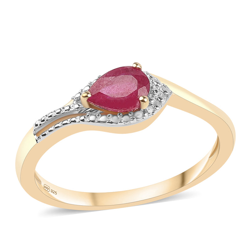 Pozlacený Stříbrný Prsten s Mozambickým Rubínem a Bílým Topazem