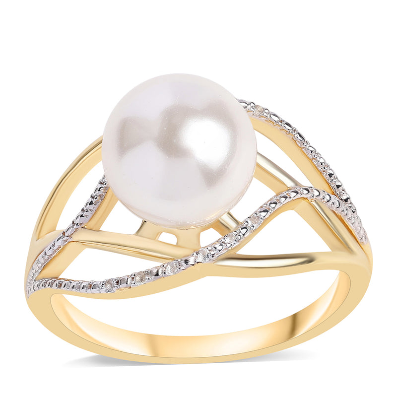 Pozlacený Stříbrný Prsten s Bílou Sladkovodní Perlou a Bílým Topazem
