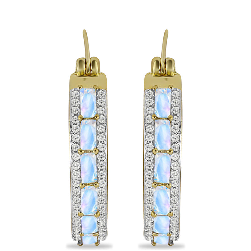 Pozlacené Stříbrné Náušnice s Duhovým Měsíčním Kamenem a Bílým Topazem