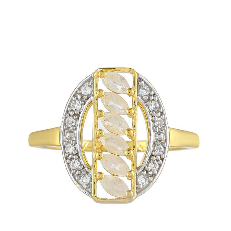 Pozlacený Stříbrný Prsten s Duhovým Měsíčním Kamenem a Bílým Topazem
