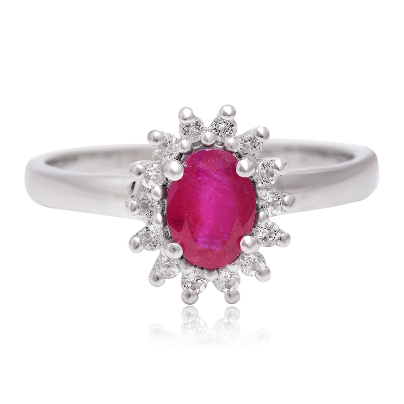 Stříbrný Prsten s Madagaskarským Rubínem a Bílým Topazem