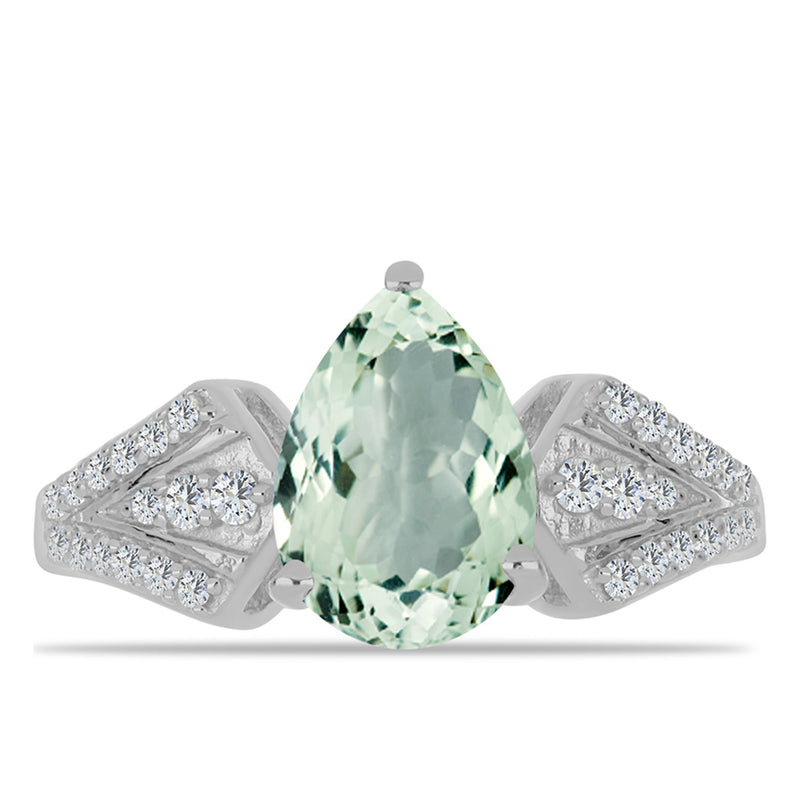Stříbrný Prsten se Zeleným Ametystem a Bílým Topazem